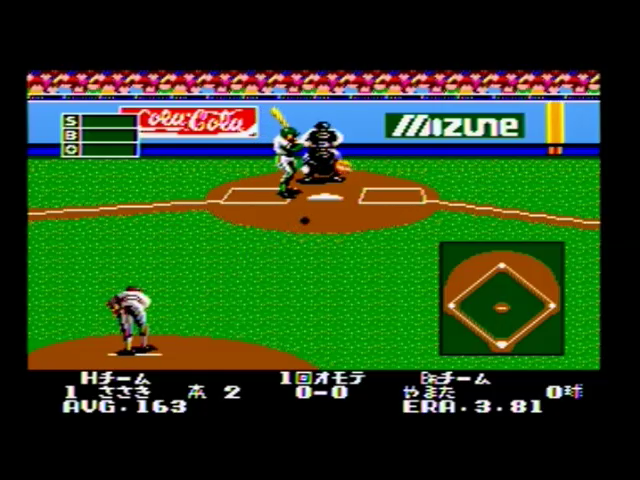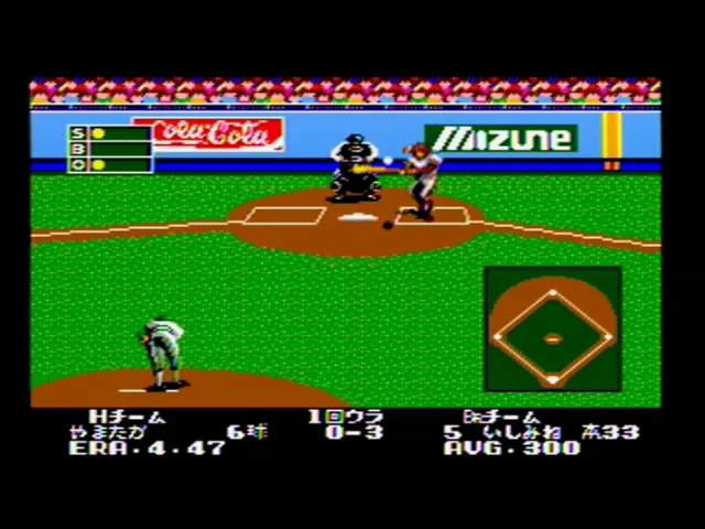 見た目が、かの伝説的な野球ゲーム「燃えろ!!プロ野球」(燃えプロの方が2ヶ月前に発売されてます)にそっくりな野球ゲーム。乱闘シーンがあるのも同じだが、当然バントではホームランできません。普通にプレイしたらCPUにバカスカ打たれます。少なくとも私がプレイした野球ゲームの中ではダントツに難易度高いです。しかも、ペナントレースでは負けは許されず、最後は強力打線のAチーム(アメリカ代表?)が相手になるので、普通にプレイしてたらクリアできそうにもない。